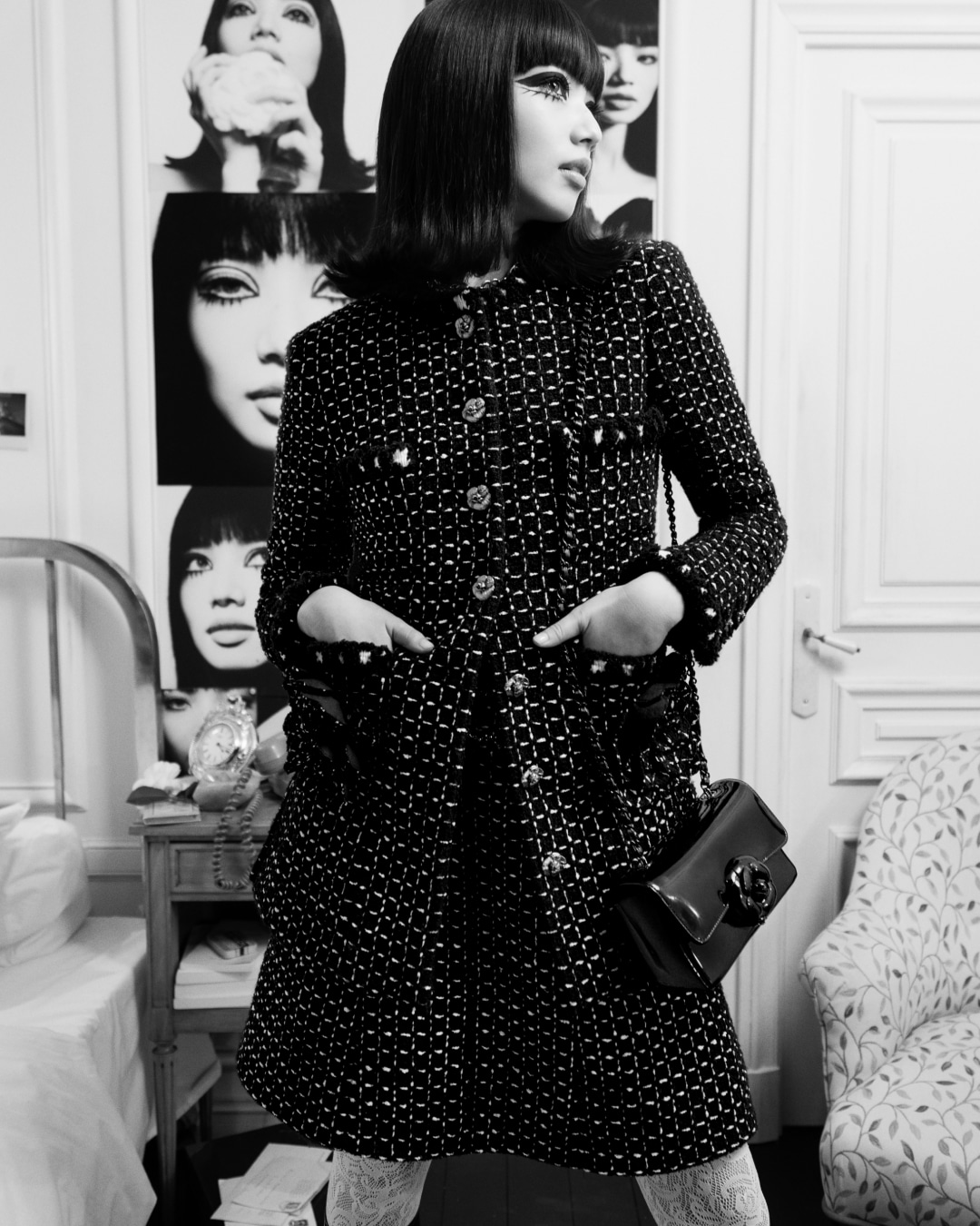 本次拍攝主題靈感源自 William Klein 1966 年的黑白電影《Who Are You, Polly Maggoo?》,講述一位年輕美國模特兒到巴黎時尚圈闖蕩並找尋歸屬感的故事,風格時而自由古怪、時而前衛浪漫,超現實的影子除了呈現在時尚圈的花花世界中,也映照到由 Dorothy McGowan 飾演的女主角身上,而小松菜奈大膽嘗試 1960 年代的戲劇性妝髮,一走到了鏡頭前又變身成另一位我們從未見過的女子。這是她 15 年模特生涯累積成的變色龍之姿,也是演員事業帶給她的成長養分,再加進香奈兒的時裝魔法,經典重現的同時也再創經典。