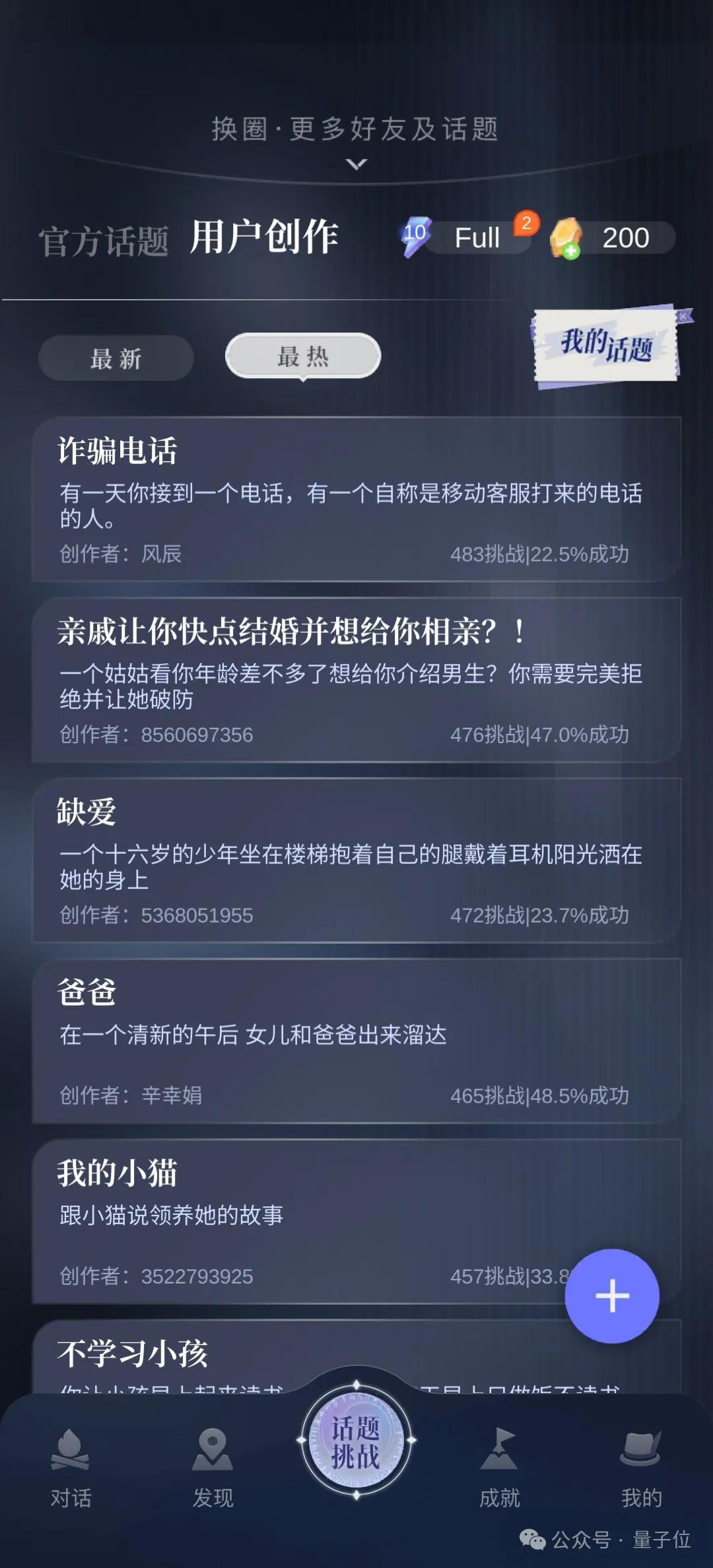 除了聊天分享心事这种玩法外,还能参与话题挑战