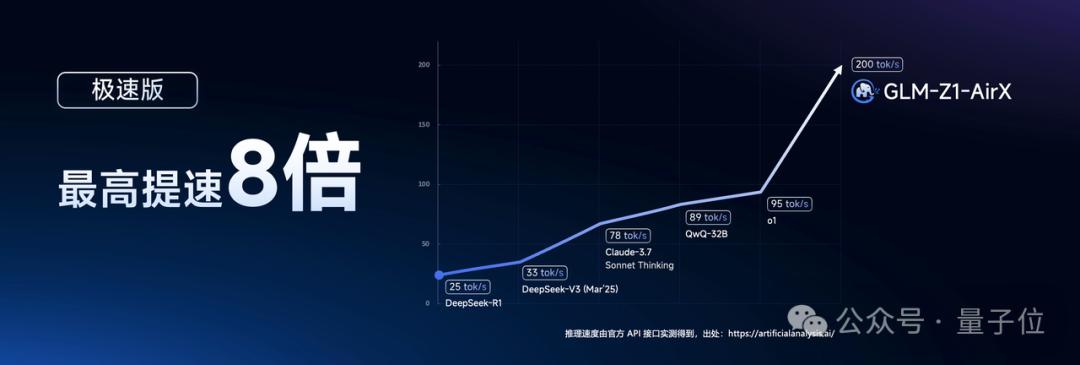 - GLM-Z1-AirX(极速版):定位国内最快推理模型,推理速度可达 200 tokens/秒,比常规快 8 倍;