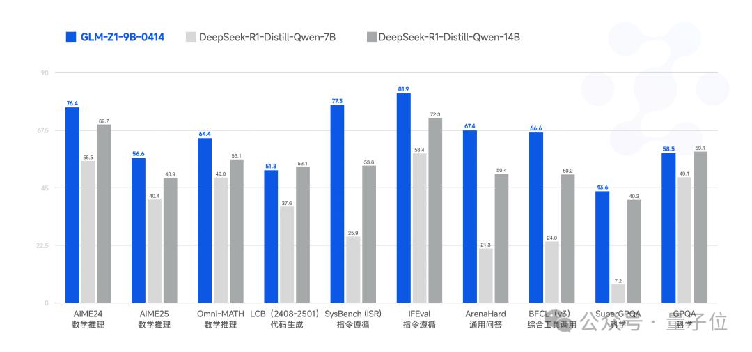 接下来,是更小规模的GLM-Z1-9B-0414,在技术上是沿用了上述模型的方法。