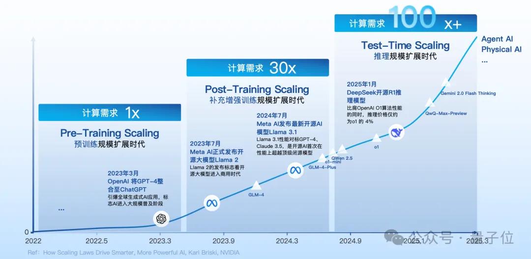 o1推理模型兴起,除了预训练模型之外,在推理过程中可以引入长思考、慢思考方式,进一步发挥有限数据的价值。