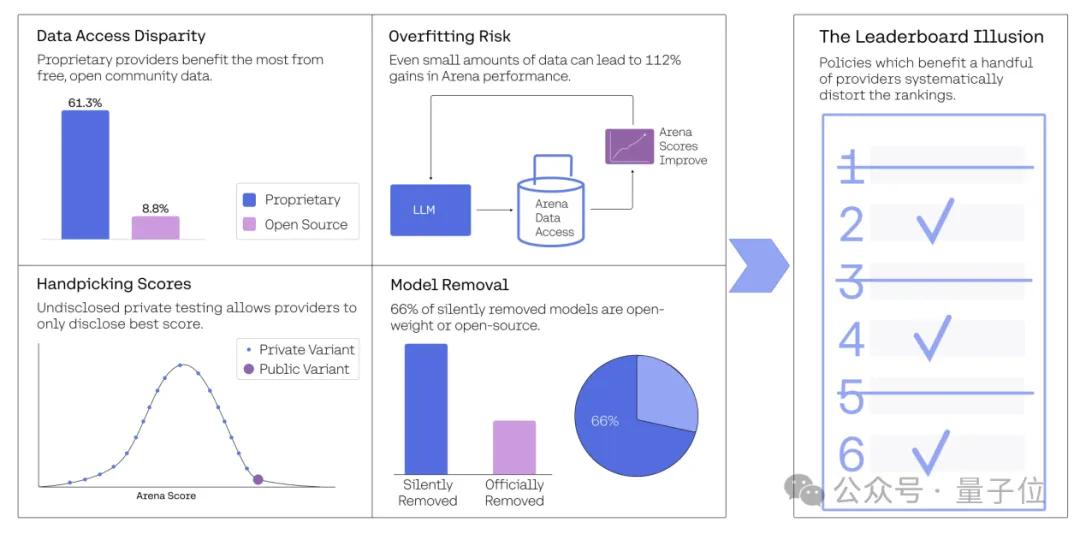 它指出,如今被视为LLM领域首选排行榜的Chatbot Arena,存在诸多系统问题。比如: