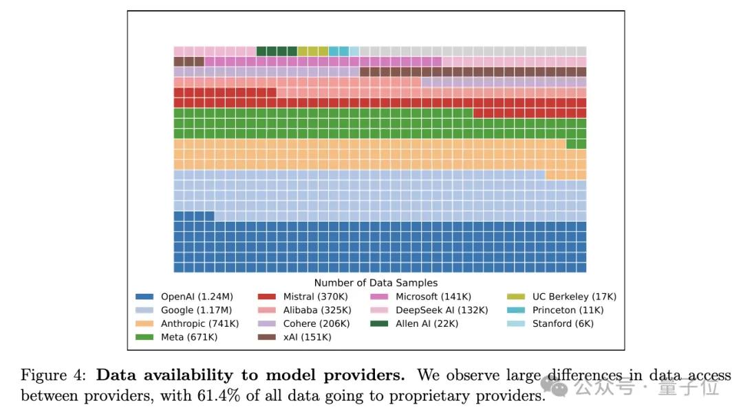 第二,数据访问不平等。专有模型获得的用户反馈数据显著多于开源模型。