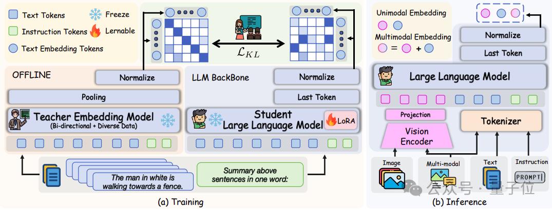 具体来说,团队首先将LLM组件从MLLM架构中分离出来,并使用嵌入提示处理仅文本输入:“ Summary the above sentences in one word: n”。