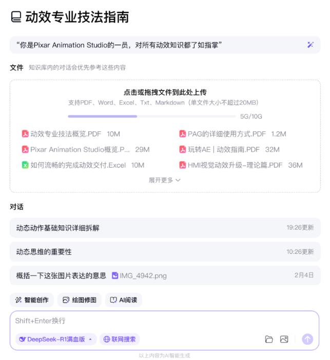 其中,个人知识库堪称个人专属的最强AI大脑外挂。想象你的大脑突然多出一个容量25G、自带智能检索芯片的”外接大脑”,它能主动消化用户上传的行业报告、学术论文、工作文档等专业资料,将对话聚焦到用户要求的领域内,不让AI回答跑偏。无论是职场人基于行业报告文档做分析,打工人基于模板输出周报,学生进行全英对话练习,都毫无压力。这种”越用越懂你”的进化能力,让每个知识库都成长为垂直领域的专家系统。
