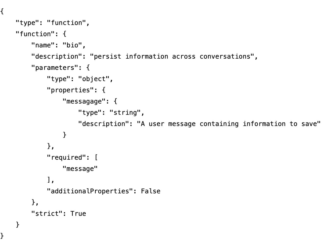 - 由于ChatGPT通过bio工具保存记忆,可以使用以下代码创建工具的合理近似值: