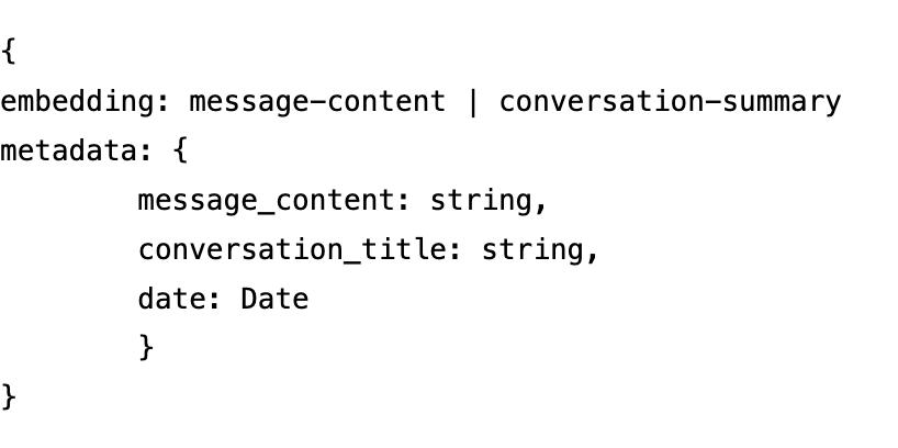 - 将发送的信息插入到message-content向量空间,当对话处于非活动状态一段时间后,再将用户信息添加到conversation-summary空间,另外配置一个由摘要索引并包含摘要的第三个向量空间。