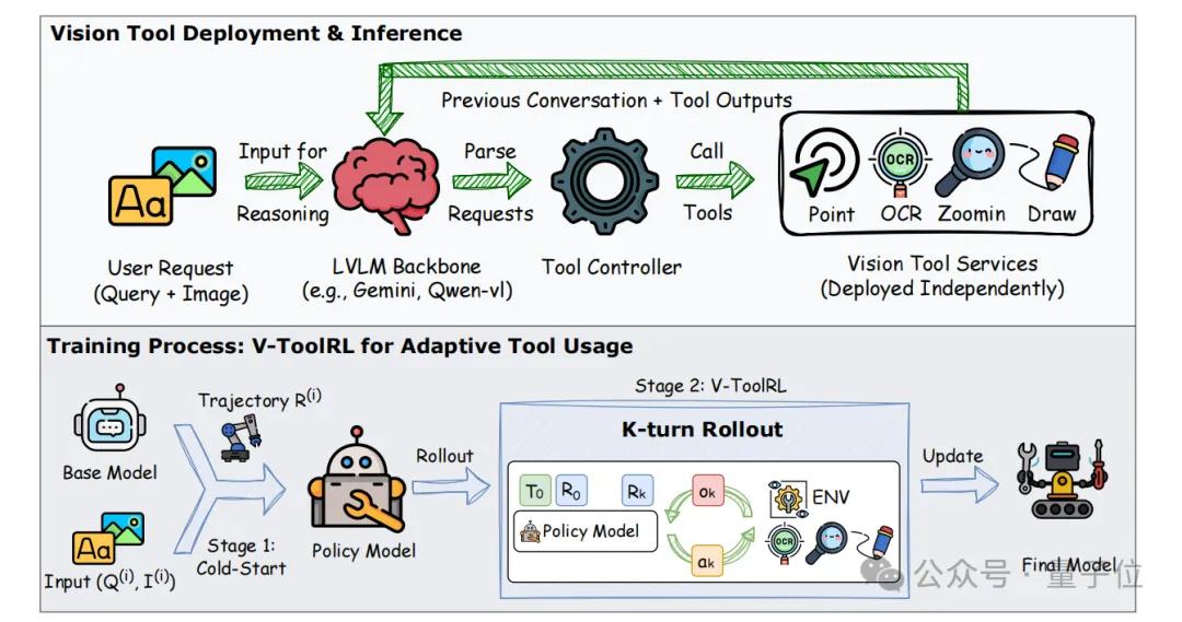 3、V-ToolRL作为核心训练算法:使AI能够真正学会自主、智能地使用视觉工具。