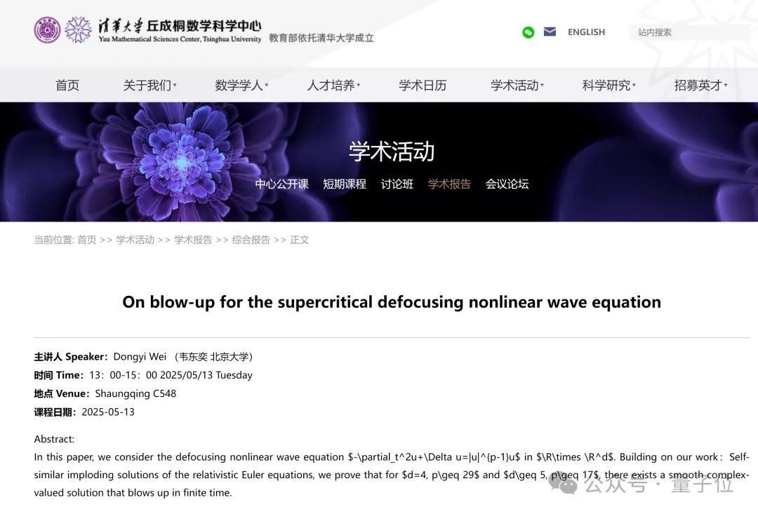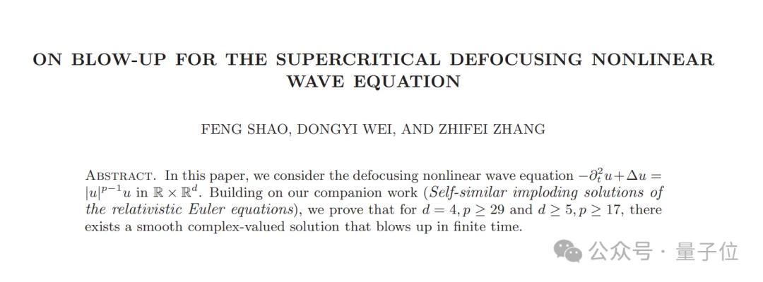 论文题目为《On blow-up for the supercritical defocusing nonlinear wave equation(超临界散焦非线性波动方程的爆破现象研究)》,通俗来说就是研究某些方程的解在什么条件下会“爆炸”失控。