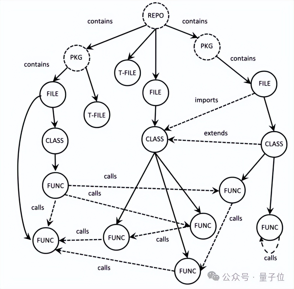 - 图模态:将仓库构建为结构化图,节点包括函数、类、文件、包等7种类型,边表示调用、包含、继承等依赖;