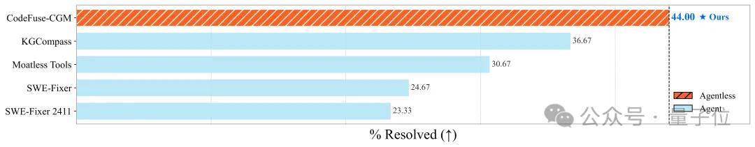 - 优于目前榜单最好开源模型“KGCompass”7.33%。