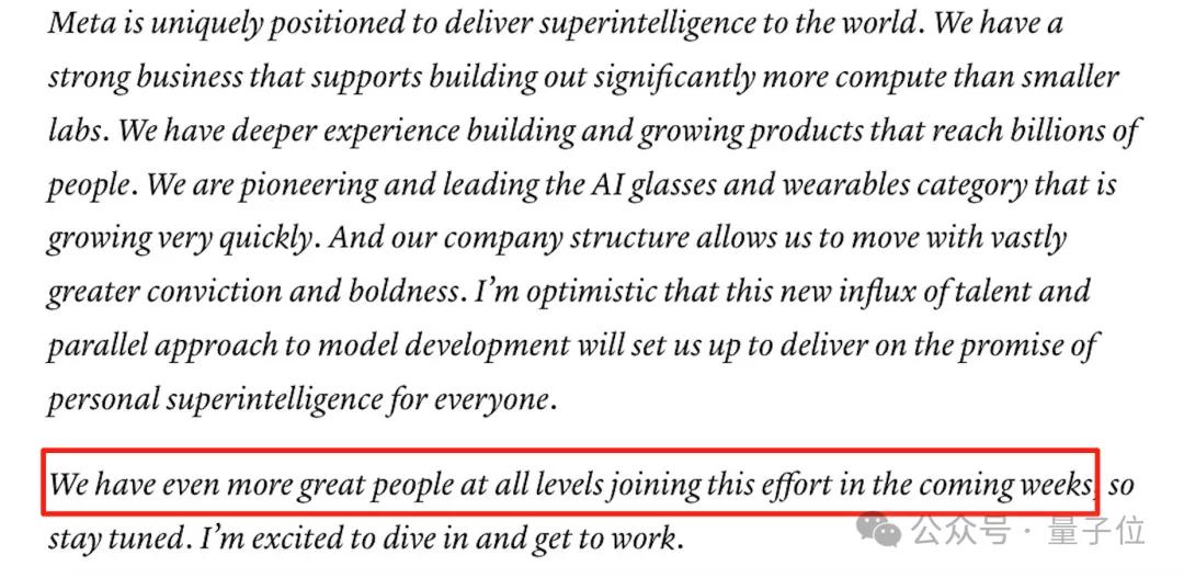 但MSL的成立似乎并不意味着“挖角行动”的收尾,因为小扎还说“团队还在组建过程中,未来几周还有更多人才会加入”……