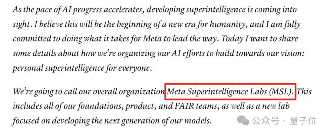 成立Meta超级智能实验室(Meta Superintelligence Labs,MSL),包括基金会、AI产品和FAIR团队,以及一个专注于开发下一代模型的新实验室。
