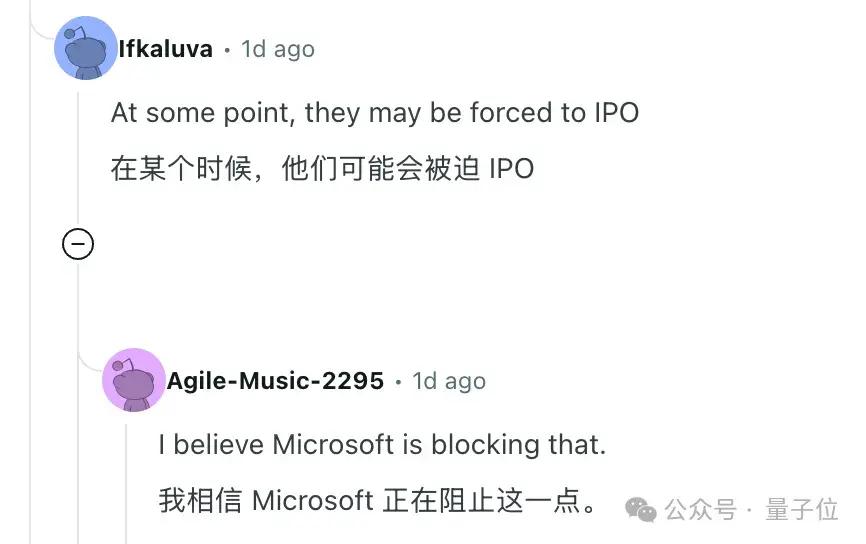 也有网友指出,OpenAI未来也许会转向IPO上市,不过微软可能会加以阻拦。