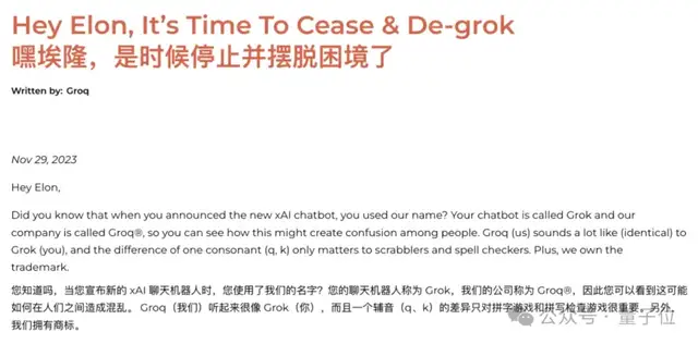 还有他们的名字——Groq和Grok看起来很像不是么?他们甚至就此“喊话”过埃隆马斯克,痛斥其“剽窃”自己的名字。