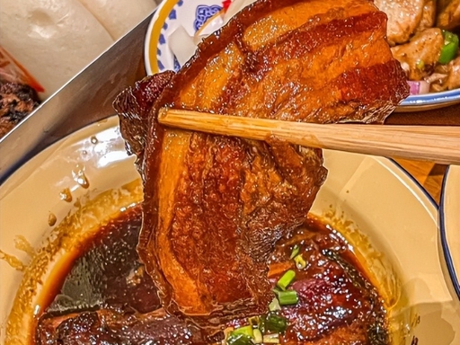 徐州人的 “米饭杀手”!肥瘦相间的五花肉切成大块,用蒲草捆扎成 “把子”,放入老汤慢炖数小时。炖好的把子肉色泽红亮,肥而不腻、瘦而不柴,入口即化。搭配虎皮蛋、兰花干、青椒,肉汁浇饭,简单却满足感爆棚。